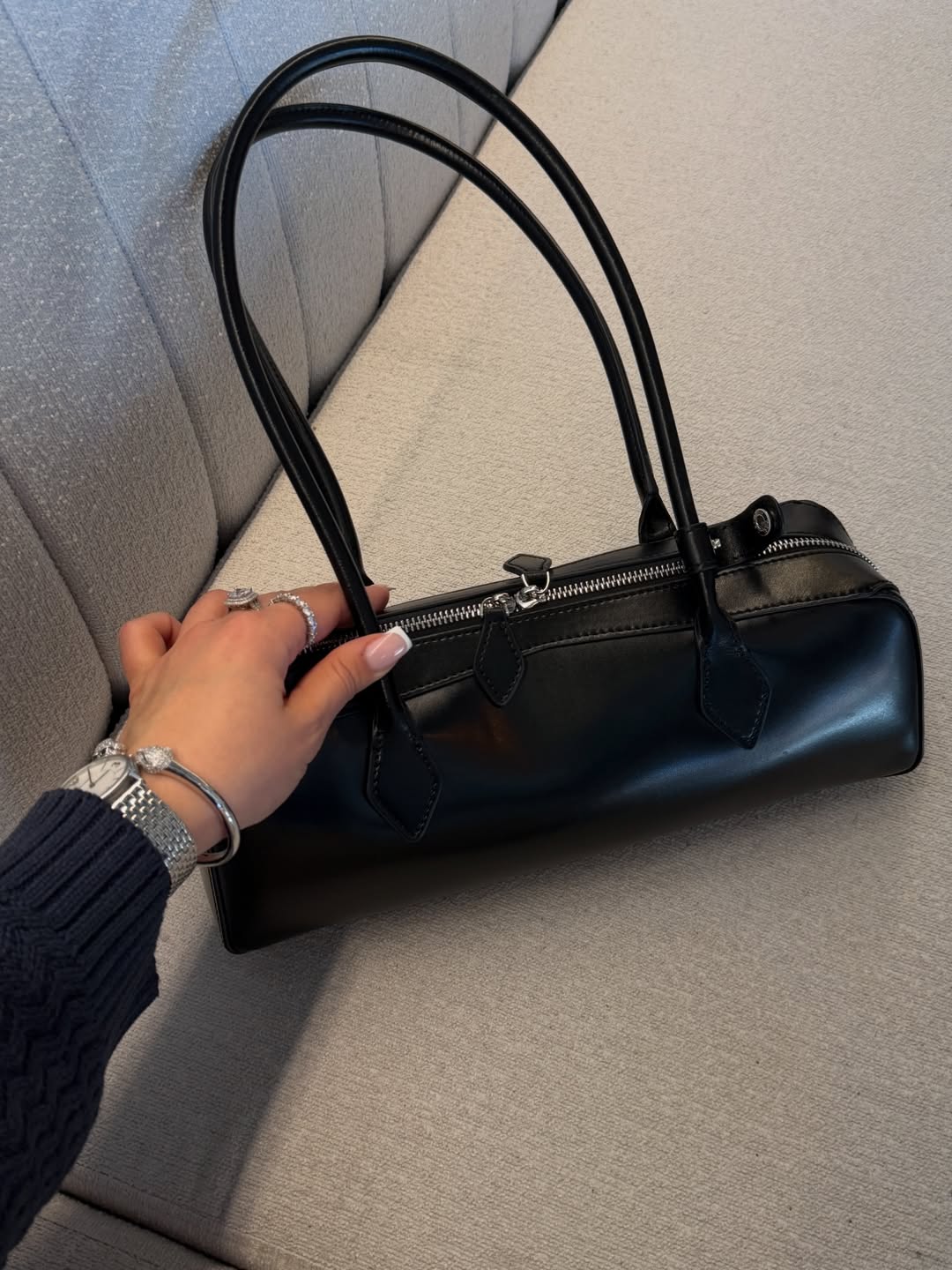 The perfect size, not too big and not too small, this baguette bag contains everything you need: smartphone, long wallet, keys, makeup, sunglasses.